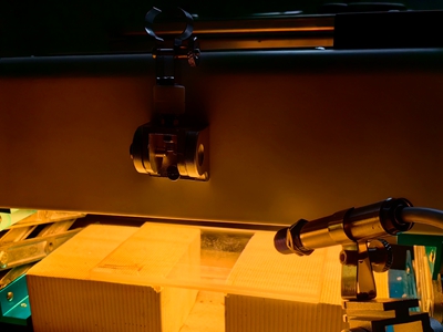 固化PP料無塵裁切可利用聚焦加熱器對半固化PP材料進行加熱,結合圓刀切割技術實現無塵裁切。其主要原理是將紅外加熱技術與傳統的裁切方法相結合,利用紅外聚焦高溫加熱,穿透力強,加熱速度快,對切割處的半固化片先加熱再裁切,從而減少切割過程中產生的粉塵,解決一直以來困擾業界的裁切半固化片粉塵及毛邊問題,提高生產效率的同時保證了操作人員的健康。